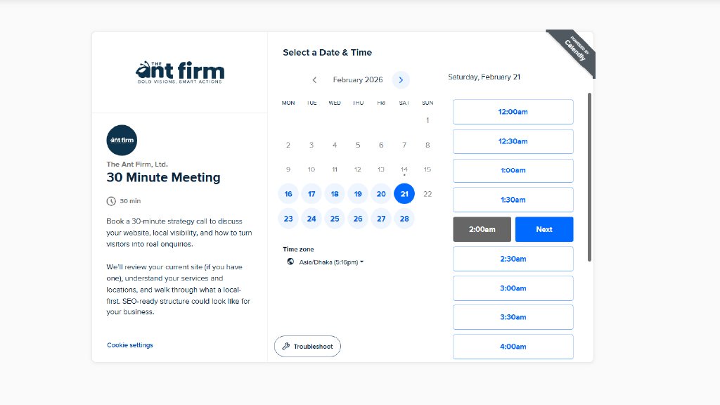 Without these, you risk losing patients before they even call. Focus on building trust, showing real results, and guiding visitors step by step. Update your website now so it works for your clinic every day and turns people who visit into clients ready to book. Want to design a local-first website for your aesthetic clinic? Well, contact The Ant Firm, LTD today to get the best service ever.