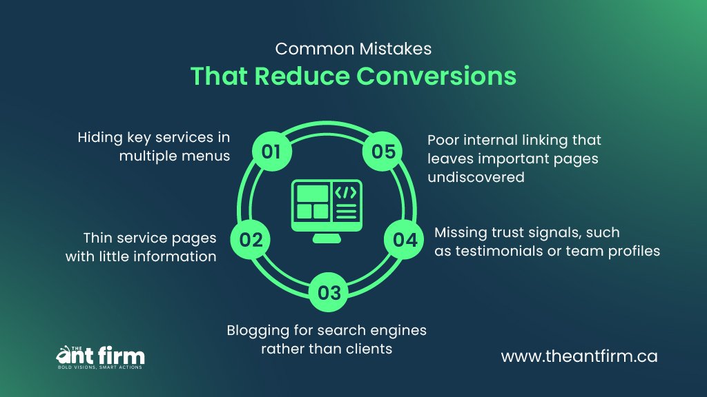 Problems often come from missing trust signals, unclear messaging, slow mobile experience, or technical issues. Your website needs to do more than show services.